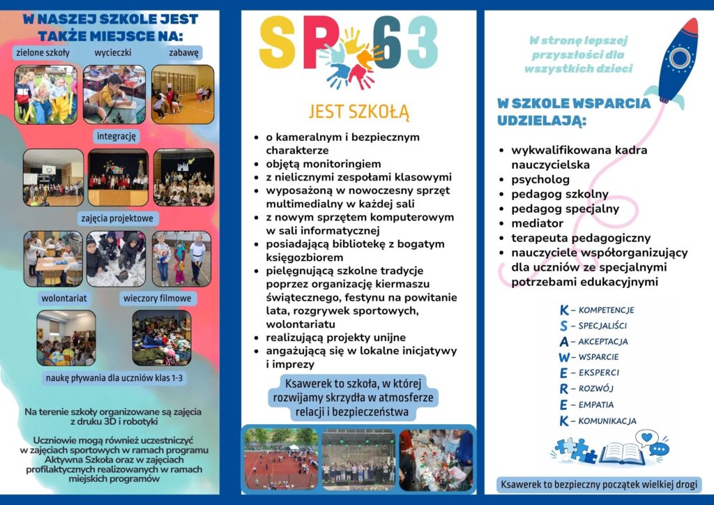 Dołącz do społeczności Szkoły Podstawowej nr 63 im. Ksawerego Zakrzewskiego w Poznaniu. Sprawdź terminy rekrutacyjne, zasady przyjęći wyślij swoje zgłoszenie.